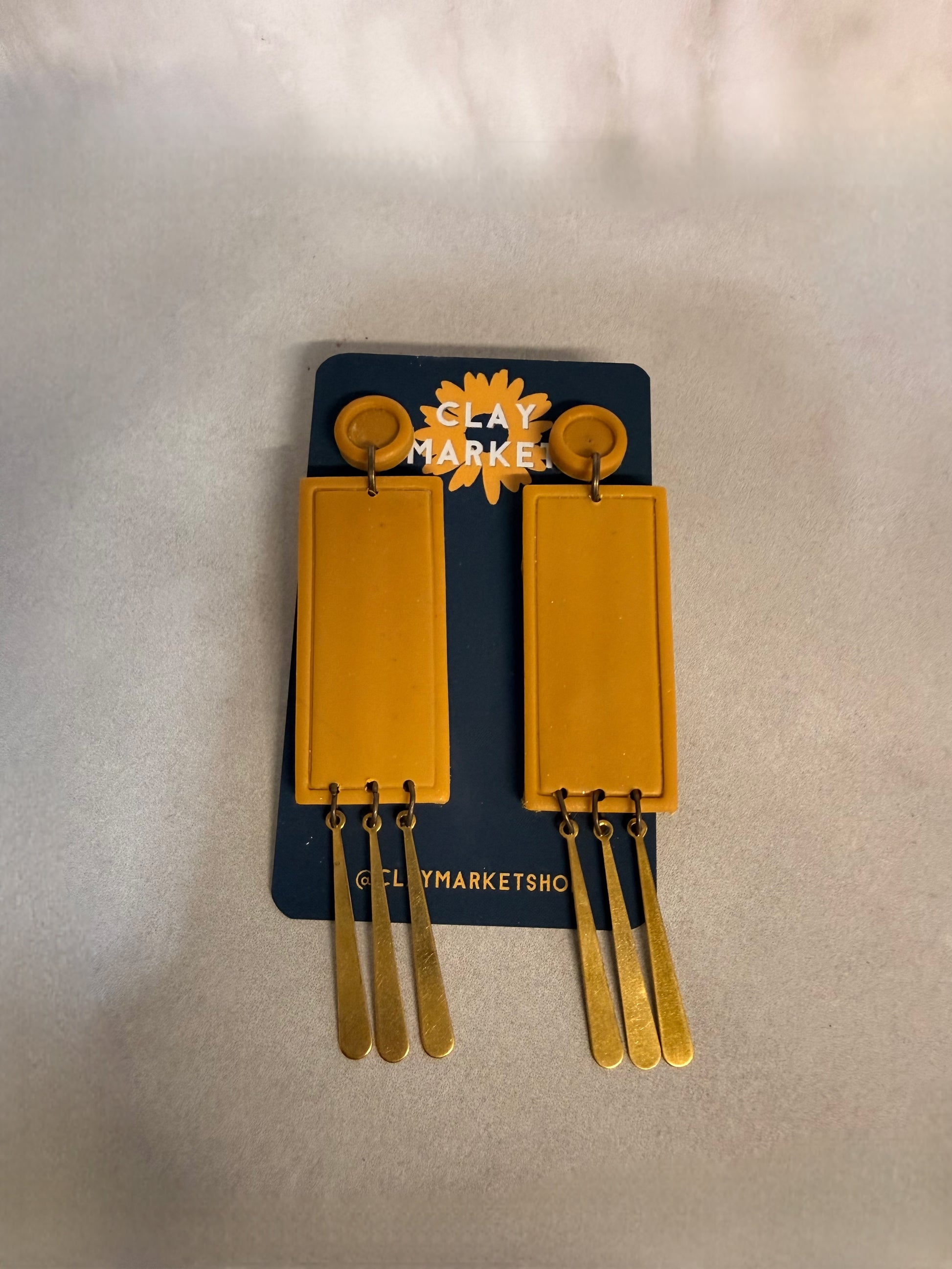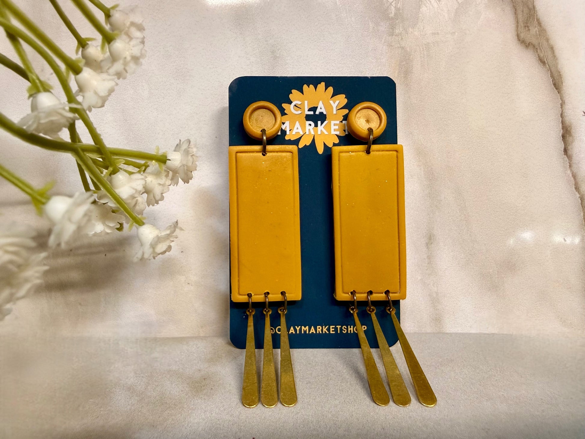 Handcrafted mustard statement earrings with brass accents and stainless steel hooks. Bold, elegant, ultra lightweight — the perfect pop of color. 💛